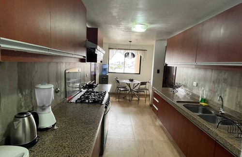 * Cuenta con una sala muy amplia con mesa comedor para 7 personas, living comodo y una Tv plasma de 55 pulgadas con coneccion a tv cable lo mejor es la vista que puedes apreciar desde la sala y el balcon.