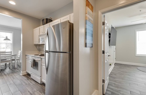 La cocina incluye nuevas encimeras de cuarzo brillante, un nuevo fregadero y triturador de basura, vajilla para ocho y todos los utensilios de cocina en caso de que usted y su grupo quieran cenar. También se incluye un K-cup maker que puede hacer una sola taza o una olla llena. Suministramos una amplia variedad de café para su estadía.