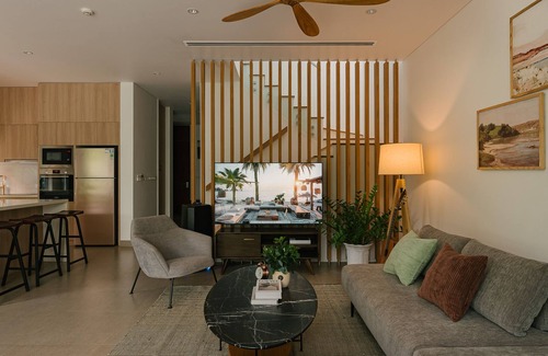 Esta casa de vacaciones de 3 dormitorios y 3.5 baños se encuentra en Xuyên Mộc y es una ubicación fantástica desde la que recorrer los alrededores. A los amantes de la naturaleza y el aire libre les encantará estar a 5 minutos a pie de Playa Ho Tram y a 12min en coche de Playa de Binh Chau. Puedes conducir 4min hasta Club de golf The Bluffs Ho Tram Strip o 5min hasta Plaza Hamptons Ho Tram.