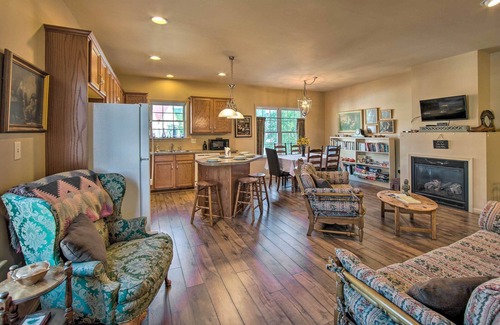 ¡Esperarás relajarte en esta acogedora propiedad al final de los días de vacaciones llenos de aventuras! Disfrute utilizando el acceso inalámbrico a Internet de cortesía de la propiedad, comunicándose con sus seres queridos en el excelente servicio de telefonía celular, disfrutando de una siesta en una de las camas queen y descansando en la sala mientras mira televisión. Mientras te relajas, calienta con tus seres queridos cerca de la acogedora chimenea. Por una tarifa, los huéspedes pueden acceder a la piscina comunitaria cercana para darse un refrescante chapuzón y luego regresar a casa para disfrutar de una deliciosa cena en el patio al aire libre.