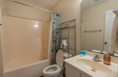 Este alojamiento de 2 dormitorios y 1 baño cuenta con una sala de estar, un comedor, aire acondicionado y escritorio. Conéctate al wifi gratis, o relájate frente a un Smart TV. El cuarto de baño incluye un secador de pelo y toallas. Prepara una comida casera en la cocina, equipada con horno, placa de cocina y frigorífico, además de cafetera y tetera, máquina de hielo y microondas. Y no tendrás que llevarte ropa de más, porque podrás aprovechar la lavadora y la secadora. Otras comodidades incluyen ropa de cama, una tabla de planchar, calefacción y servicio de limpieza limitado.