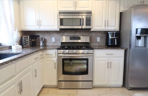 Este alojamiento de 3 dormitorios y 3 baños cuenta con una sala de estar, un comedor, un sofá cama y una zona para barbacoas. También puedes utilizar la bañera de hidromasaje, además de otras comodidades como toallas, champú y jabón. Prepara una comida casera en la cocina, equipada con horno, placa de cocina y frigorífico, además de cafetera y tetera, hervidor eléctrico y máquina de hielo. Y como podrás aprovechar la lavadora y la secadora, no te hará falta llevar mucho equipaje.