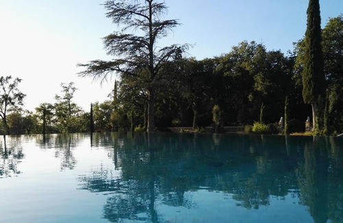 The well-kept apartment is located in the annex of a renovated farmhouse that is permanently inhabited by Swiss. The house is located in a 10,000 m2, fully enclosed park-like garden with its own driveway and private parking space. The apartment has two outside seats (morning or evening sun). At an approximate distance of 20 meters from one of the seats is an infinity pool with dimensions of 16x6 meters, which is completely built in travertine stone. Water depth gradually from 0.8 to 1.5 meters. The pool offers a wonderful view of the Tuscan garden. There are also more than 20 chickens and a well-behaved, child-friendly guard dog on the premises.