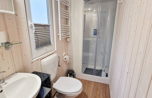 The kitchenette is fully equipped for 4 people, and every cook will find their tools here. There is also a kettle, coffee machine, large fridge, freezer, microwave and small oven. Modern bathroom with spacious shower cubicle to make you feel good. A towel warmer ensures a pleasant bathroom climate.