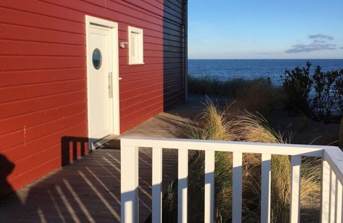 We are partners in the Baltic Sea Fjord Schlei model project! Enjoy our "sailor's shack" and a clear view over the Baltic Sea and the Schmelzünde lighthouse. The sea borders directly on your north terrace. To the south you can look across a small beach to the harbor exit from the Baltic Sea resort of Olpenitz. The house is completely surrounded by a wooden terrace. You live on 135m², have 3 bedrooms on the upper floor and a large bathroom with sauna. From this you can see directly over the outer harbor. On the ground floor, the kitchen, living room and dining room are open plan. Large windows provide lots of light and a perfect view of the Baltic Sea or the harbor exit.