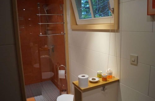 The lovingly maintained house offers a living room with fireplace, two bedrooms, a kitchen, a hallway and a bathroom with shower and toilet on one floor. The house is designed for 5 people. Occupancy with more than 5 people is only possible upon request. A mobile baby bed with mosquito protection and a children's chair are available. The kitchen was recently renovated and a dishwasher was integrated. There is also a bread maker, a deep fryer and a microwave. In a utility room there is another toilet and a washing machine. You can use your own rowing boat including life jackets free of charge. The house is powered by electricity from renewable energies.