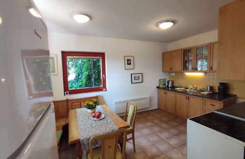 The standig individually holiday home, built in 2008 is modern furnished. The property is located in a holiday home area, on the outskirts. The domicile is also popular because of the view over the lake from the property and the quiet hillside location. For exclusive use are available: sun lounger, grill possibility, terrace and garden furniture. The landlord lives in the neighboring house, the garden is not separated from the neighboring house with a fence.LocationZamárdi. The holiday home is located on a 40 sqm, open garden plot with meadow, flowers, bushes and trees. The landlord lives permanently in a separate building on the property. The part of the garden used by the guest is surrounded by a low fence. The access goes via a mountain road (asphalted). Parking lot (for 2 cars) on the property and the street in front of the house. Specialair conditioner, electric heating. Facilities: internet access (WLAN), washing machine and dryer. TV channels only in local language. Dogsnot allowed. DistancesShopping opportunity 1400 m, restaurant 1100 m, town center 1500 m. Adventure park 4 km, go-kart 4 km, circus in summer 3 km.In summer: Lake Balaton 2 km in Zamardi (beach 2 km in Zamardi with meadow). fishing, water sports each 2 km in Zamardi. DivisionHoliday home, 2 floors, 3 rooms (including 2 bed rooms), 66 sqm, in total 6 beds (including 1 additional bed). Smoking is prohibited in the property. RoomThe entrance in your holiday home is located on the ground floor, is at ground level and leads over the 28 sqm terrace directly in the aat-in kitchen. The landlord has two friendly dogs.Ground floor: Living/bedroom with 2 extra beds on double sofa bed, TV and access to the terrace (28 sqm, garden furniture, 1 table, 6 chairs, 2 sunbeds). Kitchen with electric stove (4 plates), oven, fridge (220 l, icebox), microwave, coffee machine, toaster and electric kettle. Bathroom with washing machine, shower, 1 sink, WC and window. 1st floor: Bedroom with 1 single bed and access to the terrace (24 sqm, garden furniture, 4 chairs). Bedroom with 1 double bed and 1 additional bed on couch/sofa. Bathroom with shower, 1 sink, WC and window. Terms of lease and pricesIncluded in the priceinternet access, internet access, parking place, tv, washing machine, electricity, water, final cleaning, bed linen, hand towels. Side costs-Additionally(Payable when booking)/local tax.Deposit:EUR 150,-/object
