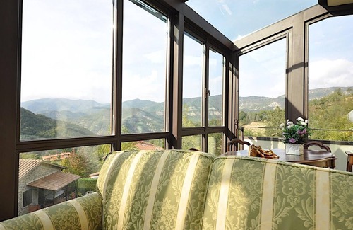 The holiday villa renovated in 2005 consists of half of a duplex house, with its own separate entrance and an annexe. The tastefully decorated villa is on two floors, providing accommodation for four people and a living room with an open kitchen area, two bedrooms and a bathroom. On the ground floor there is the living area with a kitchen unit. The kitchen unit with a fireplace provides everything you need for cooking: dishwasher, gas stove, oven, fridge with freezer compartment, microwave, coffee machine. In the kitchen area, the fireplace and the dining table ensure that you can enjoy meals together in a homely atmosphere. Adjoining the dining area is a glazed conservatory, furnished with two sofas, a coffee table, a further dining table and exuding an open, spacious and light ambience. Here you can enjoy leisurely breakfasts in the morning sun, long relaxed conversations, or simply gazing out over the green valleys and the Apennines. The two bedrooms and the bathroom are on the upper floor. In each of the two bedrooms there are two single beds joined into a double bed, which can be separated on request. In the bathroom bathed in daylight there is a shower. The annexe provides two further beds and comprises a living room with an open kitchen area, a bedroom and a bathroom. The living room has a sofa, a dining corner and a kitchen unit with an oven, microwave, fridge, coffee machine and washing machine. In the bedroom, the two single beds joined into a double bed can be separated if required. The bathroom has a shower. The building is equipped with independent heating.