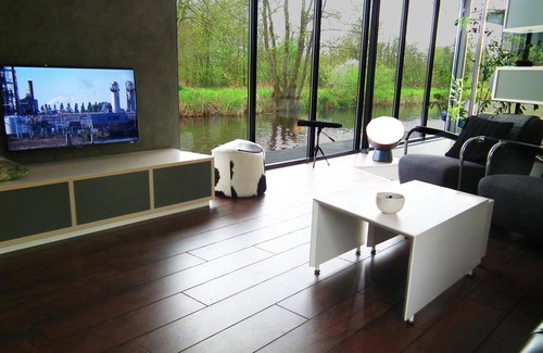 para alquilar esta casa flotante de recreo lujoso y espacioso para 4 personas situado en el Weerribben-Wieden a pocos kilómetros de la zona turística de Giethoorn en el Parque Nacional con vistas panorámicas de las Cornelis Canal. Recreativo villa de agua de aproximadamente 95 m2 con un diseño moderno es un ejemplo de diseño holandés. Las grandes paredes de cristal ofrecen vistas de la naturaleza que lo rodea con una gran variedad de aves, venados y especies raras. La terraza cubierta en el muelle cuenta con diversas salas de estar y un puerto privado. En la temporada baja, y por las noches, es un oasis de calma y espacio. En temporada alta se Siehen una variedad de barcos de paso desde Giethoorn a uno de los muchos lagos; barcos de excursiones y barcazas y canoas o barcos locales para el transporte de la caña y el ganado. Un lugar único para relajarse y un buen punto de partida para explorar las diversas atracciones de Overijssel, Giethoorn y el Parque Nacional Weerribben-Wieden. Agua Villa Intermezzo combina la vida en el agua con la protección del país, un diseño minimalista holandesa con el lujo absoluto en un paisaje siempre cambiante de los humedales.