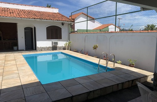Casa con 5 habitaciones, una de ellas suite y tiene aire acondicionado. Las otras habitaciones tienen ventilador. Salón con muebles y TV (canales abiertos). Cocina espaciosa y equipada, microondas, nevera y congelador. Dos balcones Piscina de 6 x 3 metros. Estacionamiento para 5 autos, amplio césped, barbacoa cubierta con 20 metros cuadrados. En el bloque de la playa (40 metros a la arena). Calle asfaltada y bien iluminada.