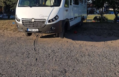 The mobile home is equipped with 4 beds, a smaller child can sleep between the beds in the back, so we have done. Toilet and separate shower. swivel front seats, big tv for being a camper. All seats are in leather.