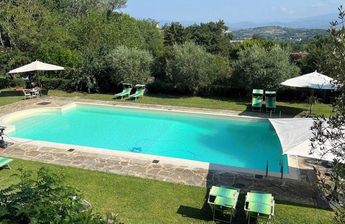 Saracino is a portion of a villa located in Arezzo, ideal for up to four people. It features two bedrooms and one bathroom, offering a comfortable and functional environment for a relaxing holiday. The villa is surrounded by a large garden with a shared pool, perfect for soaking up the sun and cooling off on hot summer days.