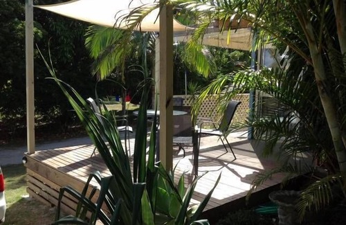 Sombreada cubierta orientada al norte para relajarse en la brisa de verano.