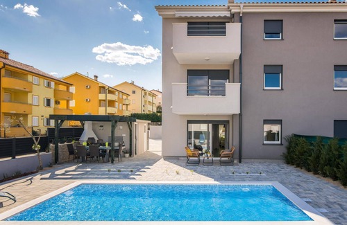 Desde el salón se accede a una de las dos terrazas cubiertas con barbacoa donde podrá disfrutar del sol. En los cálidos días de verano, la piscina privada al aire libre le invita a refrescarse y divertirse nadando. A sólo unos minutos a pie se encuentra la hermosa playa de guijarros y el mar - ideal para unas vacaciones con muchos días de playa. El apartamento también tiene una excelente ubicación para visitar otros lugares de la isla de Krk.