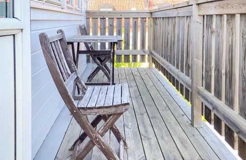 En Visby encontrará este acogedor ático en una zona residencial no muy lejos del centro histórico de la ciudad. Las habitaciones, cómodamente amuebladas, dan una impresión luminosa y acogedora y constituyen un buen marco para su estancia. Cuando haga buen tiempo, tómese un café recién hecho en el balcón mientras disfruta de los primeros rayos de sol y se plantea con calma las actividades que le esperan. Por la noche, puede preparar una deliciosa comida en la acogedora cocina y relajarse después en el sofá.