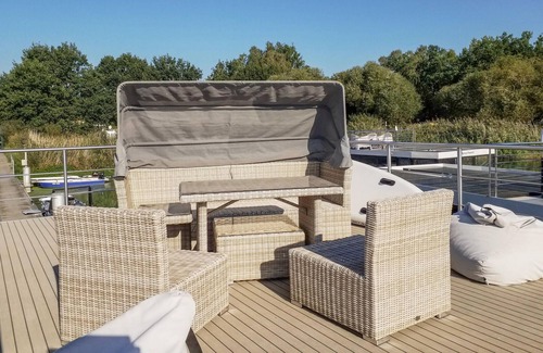 Disfrute de esta magnífica casa flotante con terraza en el lago Havel.