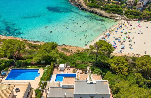 La villa de vacaciones se encuentra por encima de la bahía de Cala Mendia, en la costa este de Mallorca. La playa está a sólo unos pasos de distancia y la vecina playa de Cala Anguila se puede llegar a pie en 5 minutos. Un supermercado está a poca distancia, las compras más grandes se pueden hacer en Porto Cristo, a 5 km, o en Manacor, a 15 minutos en coche.