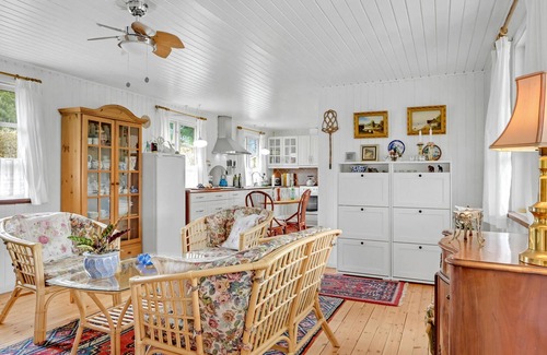 Pase sus vacaciones en esta casa de vacaciones increíblemente romántica y encantadora en Liseleje Strand.