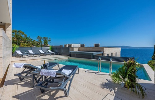 Impresionante piso junto al mar con piscina, vistas al mar, ducha exterior, tumbonas | Apartamento en Crikvenica