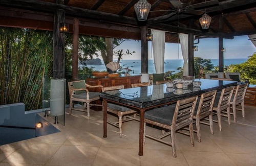 Casa Vista Azul es una fabulosa villa balinesa de cuatro pisos con una casa de piscina de 2 niveles, muebles diseñados a medida con maderas exóticas y cerámica original. Todos los detalles de esta villa respira paz y tranquilidad, proporcionando un lugar para disfrutar de momentos de calidad con sus seres queridos, así como espacio contemplativo personal para el yoga y la lectura. El área de la piscina es de hecho un oasis con una cascada y hermosos jardines. La piscina tiene una zona de nadar de vuelta y una zona poco profunda para niños pequeños con mucha sombra y una terraza. Los 3 niveles superiores de la villa tienen vistas panorámicas del Parque Nacional Manuel Antonio y del Océano Pacífico.