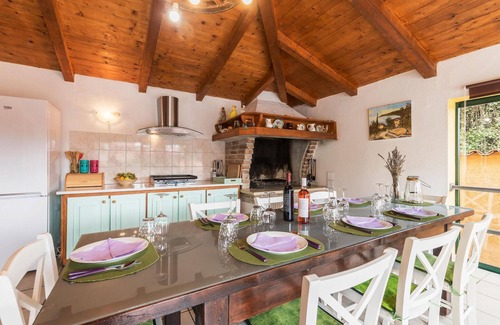 Esta hermosa casa de planta baja con piscina se encuentra en una hermosa zona con casas de familia. La piscina está detrás de la casa y cerca de ella la cocina al aire libre. La casa está a 10 minutos a pie del hermoso casco antiguo de Labin. Allí encontrará pequeñas galerías, cerámica hecha a mano y hermosas iglesias de la época veneciana, donde se celebran conciertos de música clásica durante el verano. En sólo 15 minutos en coche se llega al verde oasis de baño de Prtlog, con pequeñas playas de hormigón y guijarros. Prtlog es un lugar con sólo unas pocas casas, desde aquí se tiene una vista inolvidable de toda la bahía de Kvarner y el complejo vecino Rabac con hoteles, campings, restaurantes, etc. En sólo 1 hora en coche se puede llegar a Pula y su famoso anfiteatro. A media hora en coche se llega al rancho Barba Tone, donde se pueden tomar clases de equitación y alquilar caballos para dar un paseo.