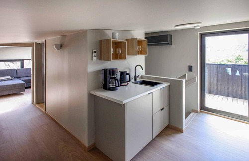 Destaca especialmente la terraza con bañera de hidromasaje, donde podrá dejarse hechizar por la espectacular vista mientras disfruta de un cálido baño o de una acogedora barbacoa.