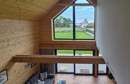 Disfrute de unas vacaciones llenas de confort y tranquilidad en esta elegante casa de vacaciones en Nowe Warpno. El diseño moderno, con paneles de madera clara y un interior diáfano, crea un ambiente relajado. Las grandes ventanas panorámicas dejan entrar mucha luz solar en las habitaciones, que invitan a relajarse en dos plantas.