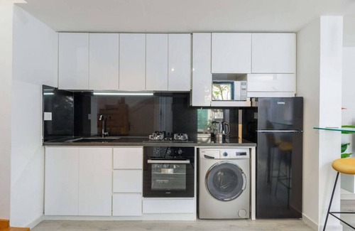 Este alojamiento de 1 dormitorio y 1 baño cuenta con aire acondicionado y escritorio. Conéctate al wifi, o relájate frente a televisión. La cocina está equipada con horno, placa de cocina y frigorífico, además de utensilios de cocina. No necesitarás llevarte mucho equipaje, porque hay acceso a una lavandería. Otras comodidades incluyen una tabla de planchar y calefacción.