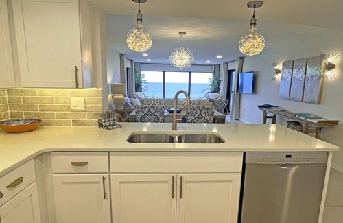 Impresionante en 2017, la renovación de este condominio Surf And Racquet Club de un dormitorio, en el quinto piso, con una cocina remodelada, completamente abierta a las áreas de estar principales, ofrece SWEEPING OCEAN VISTAS desde casi todas las áreas del condominio. BEACH HOUSE CASUAL se encuentra con COASTAL CONTEMPORARY en la sofisticada decoración.