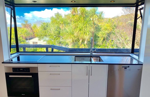 Siéntese y relájese entre la abundante vida de las aves, incluyendo Tuis y Kereru (palomas nativas). La envoltura alrededor de las cubiertas (con esa vista al mar) cuenta con jardines profesionalmente diseñados con un tema náutico. Una ubicación tranquila y apacible lo convierte en el refugio perfecto o una escapada del estrés de la vida cotidiana.