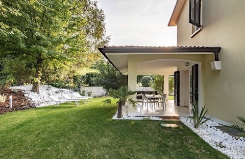 Este alojamiento mágico y exclusivo goza de una ubicación única con hermosas vistas de viñedos, prados verdes y el fabuloso lago de Italia: el lago de Garda. La villa, ubicada entre la hermosa capital del lago de Garda, Desenzano, y el pequeño y encantador pueblo de Padenghe sul Garda, ofrece 150 metros cuadrados de espacio y otros 200 metros cuadrados de jardín privado.