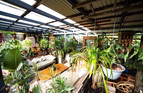 Fuera de una cabaña completamente amueblada con tumbonas para reclinarse con un libro, también cuenta con una barbacoa de 6 hornillas y una mesa de comedor. Esta área se comparte con todos los invitados.