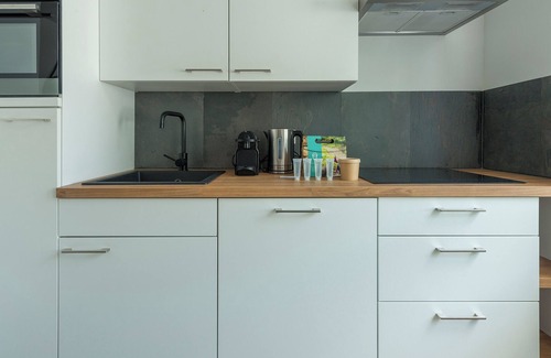 Este hermoso y completamente renovado apartamento está equipado con todas las comodidades. Al entrar, primero llegas al pasillo donde encontrarás el inodoro. Al caminar a la izquierda, entrarás en la cocina abierta donde también se encuentra la mesa de comedor. La cocina está equipada con: