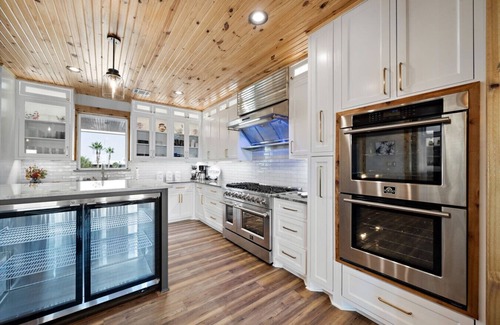 Whether you're a family or a group of friends, Johnny Walker's Lodge has the perfect sleeping arrangements. The downstairs master bedroom has a king-size bed and privacy with its own bathroom. Bedroom 2 has two queen-sized beds, a day bed perfect for a toddler, and an en-suite bathroom. Bedrooms 2 and 3 have the same sleeping arrangements of two queen sized beds and a child sized day bed, but share a jack-and-jill bathroom.