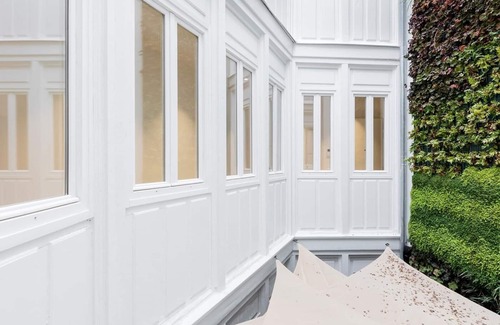 Con sus suelos de madera que aportan calidez a cada habitación, se trata de una moderna conversión de loft, ubicado en el segundo piso exterior, flanqueado por cinco balcones que obsequian abundante luz natural durante todo el día. Inspirado en la década de los 60, todo el interior del exclusivo apartamento destila minimalismo chic y gusto refinado, así es que destaca como una opción ideal para familias con niños que buscan un alojamiento confortable con estilo en un barrio emblemático en la capital madrileña.