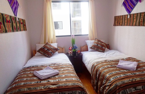 Departamento acogedor a solo 10 min de la plaza de armas de Cusco y 7 min del aeropuerto de cusco, lugar tranquilo sin ruido ideal para pasar con la familia o los amigos y movilizarse desde aqui para todos los destinos turisticos en cusco como: Valle sagrado de los inkas, Machupicchu, Maras, Moray, Chinchero, montaña de 7 colores, etc. tambien le damos asistencia para las visitas de los mismos atractivos.