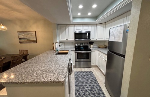 Opiniones de todos los invitados. Esta suite Bayside ha sido renovada con pintura nueva, persianas, muebles, electrodomésticos de acero inoxidable, juego de comedor y juegos de cama nuevos. Con 2 dormitorios y 2 baños completos, esta unidad puede alojar cómodamente a 6 personas. El maestro contiene una cama king size y un baño completo, mientras que el segundo dormitorio está equipado con 2 camas completas y su propio baño completo. La cocina completa cuenta con encimeras de granito y un concepto abierto para vistas de las áreas de estar y asientos.
