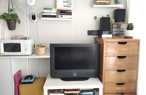 Alojamiento rural tipo mobilhome cómoda y con todo lo necesario para disfrutar en un entorno tranquilo y agradable. Espacio exterior apto para mascotas y posibilidad de acceder a zonas comunes deportivas y piscinas de la Urbanización.