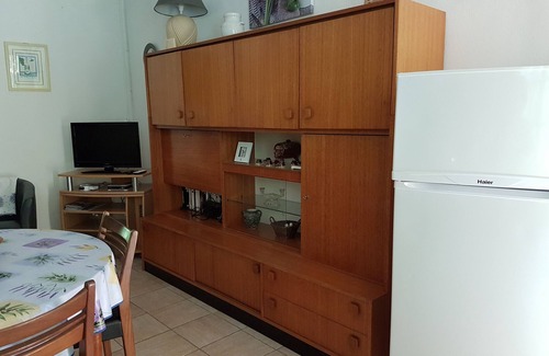 Área sombreada de la terraza. Sala de estar / cocina, TV WiFi, 2 habitaciones: dos camas dobles, baño con ducha, calefacción eléctrica.