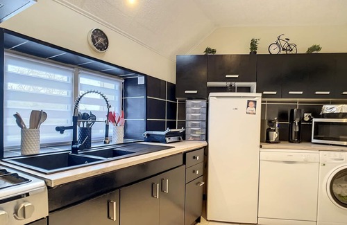 A living room and a dining area are featured at this 1-bedroom, 1-bathroom rental. Connect to the free WiFi, or get cozy in front of the Smart TV. The kitchen is equipped with an oven, a stovetop, and a refrigerator, as well as an electric kettle, a microwave, and cookware. And you won't have to pack extra clothes, because you'll also have a washing machine. Other amenities include housekeeping and a dining table.
