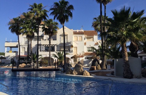 En un complejo típico andaluz con 2 piscinas abiertas de abril a septiembre.