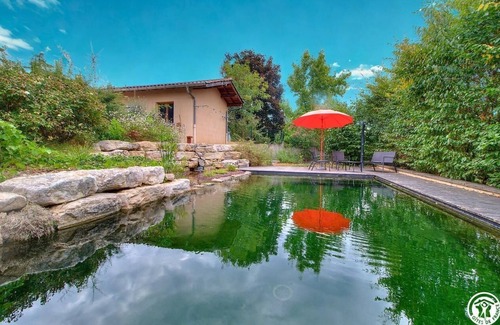 Welcome to La Petite Escale, your haven in Trévoux. Here, everything invites you to relax and savor the moment together. Nestled at the gateway to Dombes, this stay will also be an opportunity to discover a town with a rich history. The former capital of the Principality of Dombes, it captivates visitors with its medieval streets, half-timbered houses, and artists' studios. The "Trévoux, Capital of Dombes" discovery tour takes you through its historic monuments. A short walk away, the banks of the Saône offer beautiful walks or bike rides, all in a peaceful, green setting. Extend your outing with the Voie Bleue (Blue Way) for a sense of serenity and escape along the water. For a cultural outing, Ars-sur-Formans boasts a tourist and spiritual appeal that draws visitors from all over the world thanks to the sanctuary of the Saint Curé d'Ars. Looking for nature? Extend your discovery with the Dombes ponds, their authentic landscapes and birdlife. A truly unspoiled natural setting with a park in Villars-les-Dombes. During your stay at the cottage, enjoy the private and shared spaces that have made the property famous: a natural swimming pool, a real highlight of the property. This living pool, surrounded by aquatic plants and populated by fish, promises an unusual, refreshing, and 100% natural swim. Ideal for recharging your batteries in pure water and an authentic environment. After your discoveries, return to peace and well-being. You will return to the comfort of your cottage, designed like a vacation home with a warm style. The living areas are located upstairs and offer a fully equipped kitchen semi-open to the living room, a cozy lounge with a decorative fireplace for your cozy evenings, and a double bedroom with its private bathroom. Travel light: your stay is all-inclusive - bed made upon arrival, towels, house linens, and utilities included. The cleaning package too.