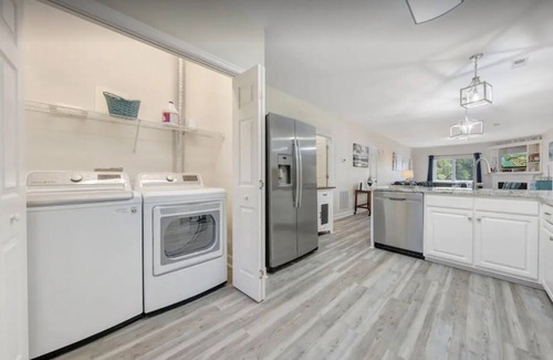 Este alojamiento de 2 dormitorios y 2 baños cuenta con una sala de estar, un comedor, chimenea y aire acondicionado. El cuarto de baño incluye un secador de pelo, toallas y papel higiénico. La cocina está equipada con horno, placa de cocina y frigorífico, además de cafetera y tetera, hervidor eléctrico y máquina de hielo. Podrás viajar con poco equipaje, porque tendrás una lavadora y una secadora a tu disposición.