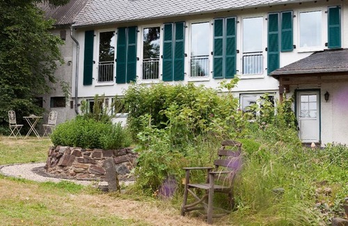 Disfrute de su estadía en nuestra granja cuidadosamente restaurada. Te relajas en un lugar apartado excepcional en una finca espaciosa y verde rodeada de numerosos campos y prados. Una visión impresionante y sin problemas también da la sensación de un merecido descanso en el campo. La estancia en nuestra acogedora casa de campo es una experiencia especial en cada temporada. Aquí es solo "llegar, quedarse y sentirse bien". El salón Nuestra casa de campo ofrece 140 metros cuadrados de espacio habitable suficiente para 4 personas. Vives en 2 plantas en habitaciones muy amplias, luminosas y elegantes. Una entrada separada y estacionamiento privado está a su disposición. Nuestras camas son de 180x200 my aptas para personas alérgicas. La moderna cocina cuenta con lavavajillas, nevera con congelador, cafetera y carga con el mejor equipamiento para cocinar. Le ofrecemos un servicio especial para que pueda encontrar una nevera llena a su llegada. Acceso para huéspedes En nuestra amplia área de jardín tiene muchas opciones de asientos para disfrutar de la paz y la relajación en nuestro hermoso entorno. Mire a lo lejos y disfrute del verde exuberante de los prados y los árboles y del azul claro del cielo. Interacción con los huéspedes Como anfitriones, siempre estamos disponibles para nuestros huéspedes en cualquier momento. Si lo desea, déjese llevar por el anfitrión, que también es el forestal local, especialmente los hermosos lugares de nuestro hermoso paisaje. Para estancias más largas en nuestra casa, puede solicitar nuestro servicio de lavandería y tintorería. Habla con nosotros Otra información importante Con respecto a las personas alérgicas, no aceptamos mascotas y pedimos abstenernos de fumar en el apartamento.