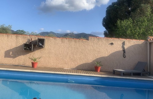 New one roomed cottage in the grounds of our house, very quiet, own terrace, access private swimming pool (8x4 m), kitchenette. Full bathroom (shower), on-site parking. New air conditioning unit. 3 km from beaches (Le Racou, Argeles sur Mer), Collioure is the next village, close to beautiful walks in the Pyrenees. 10 minutes walk to the village centre shops. We can loan you bikes. Outdoor table and chairs provided. We are usually close by if you need anything. Couples only or adult with child over 10. No pets.