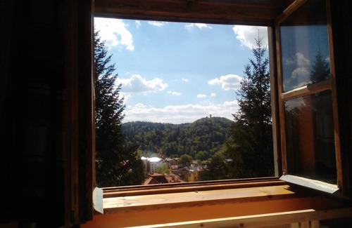 The holiday house in a south-facing location is spread over three floors and can accommodate twelve people. The lowest floor has three bedrooms. The first bedroom has a double bed and an adjoining bathroom with a bath. The second bedroom has two single beds and the third has one single bed . On this floor there is also a separate WC with a washbasin and a washing machine. The spa room where the hot tub and sauna are located. All the rooms and the hallway on this floor have under-floor heating. The ground floor has a bedroom with double bed, flatscreen TV, a little table,chairs and playing mats for children. The adjacent bathroom has a shower, a washbasin and a toilet. On this floor there are three further bedrooms. The first has a double bed the second has one single bed , and the third has a double bed. The first floor of comprises a living room with a flatscreen TV a sofa bed for two people. The open kitchen with a dining space is fully-equipped with all the necessary appliances and also has a dining table with chairs. The ground floor and first floor have central heating. Free wireless Internet access is available throughout.
