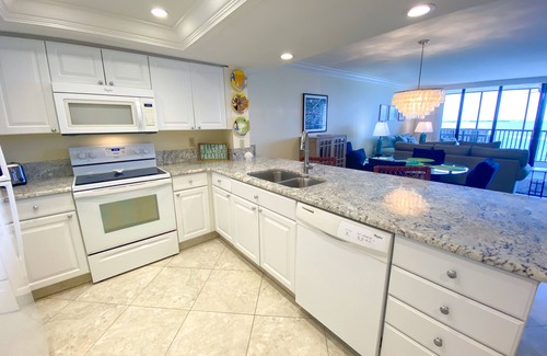 Bay View Tower 336: esta renovada propiedad de alquiler en el puerto de Sanibel cuenta con encimeras de granito y electrodomésticos nuevos en la cocina, baños completamente nuevos y pisos nuevos en toda la unidad. Los colores claros para el tema de la decoración ofrecen un ambiente sereno y el sentido amplio. azules y verdes pálidos y vibrantes fluyen a lo largo de la unidad en un comunicado hasta la fecha de la moda. El dormitorio principal tiene una cama king y el dormitorio de huéspedes tiene una cama de matrimonio. Unidad muy atractivo, con muchos detalles bonitos y comodidades. Este condominio Sanibel Harbour tiene vista al mar y vistas a la playa de la malla en balcón.