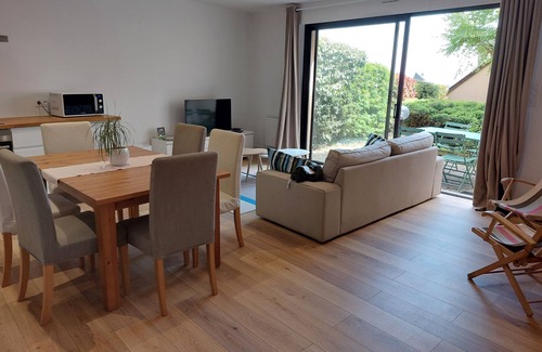 El alojamiento es funcional y está equipado con microondas, placa de inducción, horno, cafetera Nespresso, toallas de baño, sábanas ...