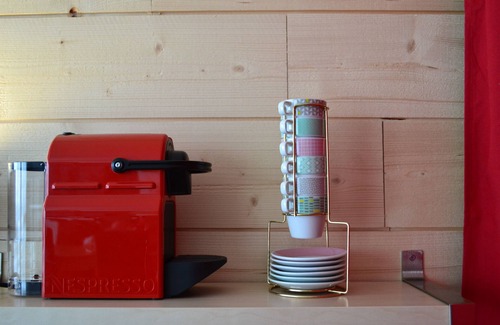 _ cocina bien equipada con lavavajillas, horno con puerta fría, máquina de raclette, Nespresso.