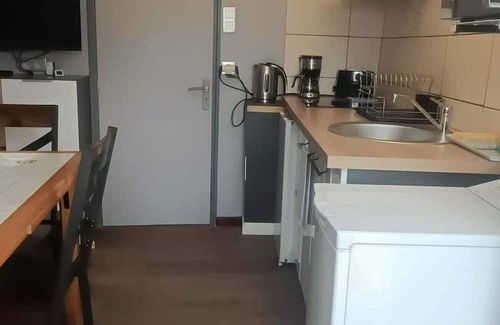 Vous arrivez directement dans l'espace de vie avec sa cuisine aménagée, son coin repas et son canapé lit ( pour 1 personne). Une chambre séparée avec son lit de 140 et sa salle de bains, Wc, douche complète la petite maison. Profitez un jardin équipé avec salon de jardin, barbecue. L’accès à la maison se fait par la montée d’une dizaine de marches pentues et étroite.